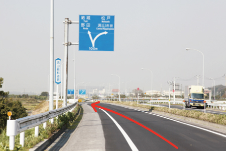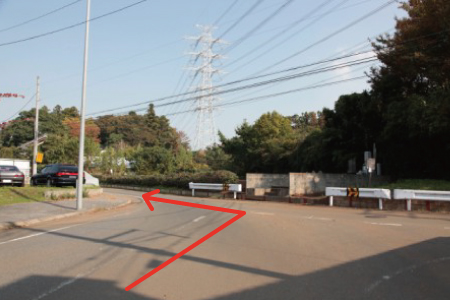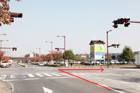 | 1. インターを出てY字路を左方面 |