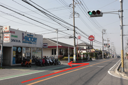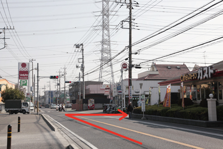 | 1. 流山方面からの場合、ガストとバイクショップの間の道へ左折 |